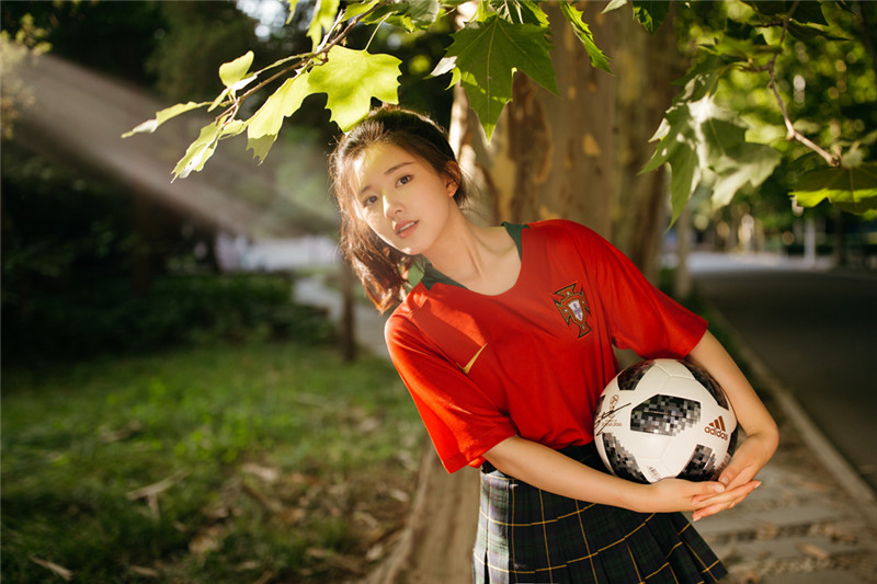 近日,趙露思曝光了一組寫真。照片中,趙露思身著球衣,下搭黑色格子裙,扎起活力馬尾辮,與足球親密互動,活力滿滿。