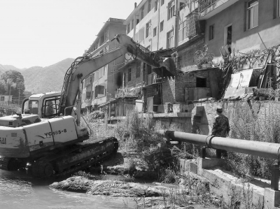 日前,仙游縣菜溪鄉(xiāng)組織執(zhí)法人員開展河道清理專項整治行動,共清理違規(guī)搭蓋10處,關閉雞舍鴨籠16處。圖為執(zhí)法人員拆除占用河道違章建筑。