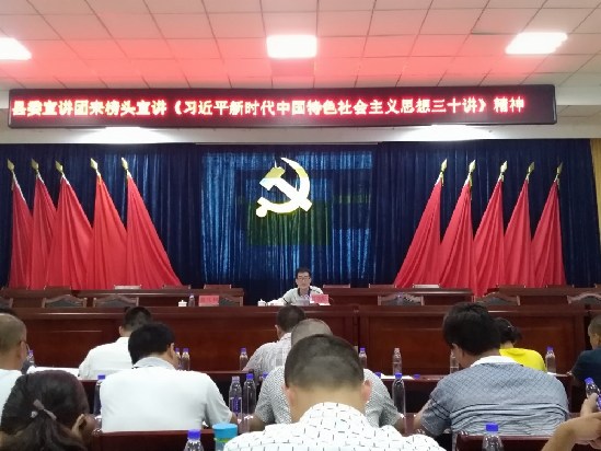 7月19日下午,仙游縣委宣講團成員、縣委宣傳部副部長、縣社科聯主席黃朝陽來榜頭鎮宣講《習近平新時代中國特色社會主義思想三十講》。榜頭鎮黨委書記蔣慶和主持,全鎮干部職工、鎮直鎮辦負責人和各村(居)主干、文書聆聽宣講。 黃朝陽結合工作實際,從意識形態關乎旗幟、關乎道路、關乎國家政治安全;意識形態領域形勢依然復雜、挑戰依然嚴峻;牢牢掌握意識形態工作領導權;堅決打贏網絡意識形態斗爭四個方面對第十九講《建設具有強大凝聚力和引領力的社會主義意識形態》進行了宣講。宣講報告脈絡清晰、生動形象、重點突出、切合實際,對榜頭鎮全體干部準確理解和全面把握習近平新時代中國特色社會主義思想,進一步做好榜頭意識形態工作具有很強的指導意義。 榜頭鎮黨委書記蔣慶和要求,全鎮黨員領導干部要帶頭開展學習《三十講》,各黨支部要以支部“三會一課”為載體,通過開展形式多樣的主題宣傳教育和“主題黨日”活動,廣泛組織集中學、系統學、聯系實際學,精準領會思想實質,做到融合貫通、知行合一。迅速將思想和行動統一到中央的各項決策部署上來,凝心聚力,推進各項決策部署在榜頭落地生根開花結果。 |