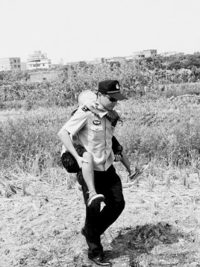 ② 26日上午,仙游縣公安局榜頭派出所接到群眾報警——在榜頭鎮象山橋頭旁邊有一名老婦人跌倒在田間。民警盧煙表、鄭宏立即趕到現場。 老人躺在地上無法動彈。盧煙表小心地將老人攙扶起來,發現老人的右腳扭傷腫大,痛苦萬分。烈日暴曬,四周沒有遮陽的地方,他當即豎直身體,為老人遮陽。同時,用手機為老人采集人像,進行信息比對,這才獲知老人系象山村村民,已92歲高齡。他撥通其家人電話,卻被告知都在外地,一時半會兒回不來。 “來,我背您回家!”盧煙表迅速背起老人(圖①)。由于田地凹凸不平,雜草叢生,短短600米的路程也走得很艱辛。 終于,他把老人送上警車,開往象山村村部。在與村干部交談中,盧煙表、鄭宏了解到,這位老太太就住在村部附近,平日里總是閑不住,經常瞞著家人到田間干些農活,當天因天氣炎熱輕微中暑,不慎摔倒。 從村部到老人的家,途經一狹窄的小路,駕車無法到達。盧煙表再次背起老人(圖②),將她送到家中,并叫來醫生診斷。在確認老人無大礙之后,他倆才放心離開。 |