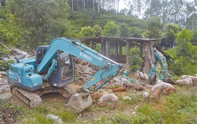 ① ② ?8月4日,由度尾鎮主要領導帶隊,全鎮干部職工組成聯合執法隊伍,對轄區內造成污染的畜禽養殖場進行強制拆除,拉開了該鎮新一輪污染防治攻堅戰的高潮。 ?為打好污染防治攻堅戰,度尾鎮鐵腕治污,組織所有鎮村干部,同時借助視頻監控、無人機等科技手段,對轄區內反彈復建、遷移至偏僻角落的養殖場進行地毯式大排查。當天,由度尾鎮黨委書記官金華、鎮長蔡俊賓分別帶隊,兵分兩路開展聲勢浩大的畜禽養殖整治統一行動,劍指前期排查出的12家畜禽養殖場。 ?沿著崎嶇的山路,記者跟隨執法人員來到度尾鎮湘溪村,一處大規模養豬場就藏身在深山山坳中?!霸擆B殖戶原本在潭邊社區養豬,被取締后就移入深山、躲避檢查?!眻谭ㄈ藛T表示,通過無人機航拍,這個大規模養豬場才被發現。 ?記者現場看到,該養豬場占地面積近2000平方米,6個簡易搭蓋的豬圈一字排開,圈養生豬500余頭。該養豬場位于湘溪村的小溪上游,豬糞污水直排小溪流經村莊,造成了嚴重污染。執法人員當場對該養豬場進行斷水斷電,并出動挖掘機拆除全部養豬設施。 ?在勵山村,2000多只鴨子被放養在秦宅溪上游,露天鴨場堆積著厚厚的鴨糞,臭氣沖天,現場還挖了三個蓄水池養鴨,造成污水橫流?!斑@個養殖戶郭某屢教不改,一年多以來,我們先后五次對他養殖場進行執法拆除。每次執法人員一走,他就私拉電線,重新搭起鴨舍,玩起了游擊戰。”執法人員表示。 ?為了徹底消除這一處頑疾,執法人員在拆除鴨舍、斷水斷電的同時,現場挖開蓄水池,將水放干,并堵塞了進入該養殖場的山路。 ?據統計,在為期一天的整治行動中,度尾鎮共拆除非法畜禽養殖場12家,拆除面積8000余平方米,涉及霞溪、東峰、云居、礪山、中峰、湘溪6個村。 ?度尾鎮黨委書記官金華接受采訪時表示,該鎮已與轄區19個村居的主干簽訂了《畜禽養殖整治責任書》,要求對轄區內畜禽養殖場及時整治、上報,并結合當前村級組織換屆選舉,對整治不力的村支部書記予以降職、村主任候選人一票否決。同時,對巡查、整治不力的鎮包片領導、包村工作隊進行問責。 ?圖①:拆除養豬場。 ?圖②:現場執法。 |