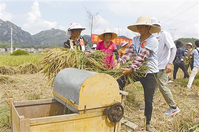 開場 農事體驗 稻田大力士 大豐收 在豐收的喜慶時節,全市歡慶首屆“中國農民豐收節”主會場活動,在鐘山鎮朗橋村舉行。市委書記林寶金,省農業廳副巡視員宋國林,副市長吳健明,縣領導鄭亞木、吳海端等來到朗橋,與農民共慶豐收節。 據悉,今年6月21日,經黨中央批準、國務院批復,自2018年起,將每年秋分日設立為“中國農民豐收節”。9月23日是第一個“中國農民豐收節”,莆田市首屆“中國農民豐收節”由市農業局、縣委縣政府主辦,主會場設在鐘山鎮朗橋村,同時在各縣區設立分會場。 據了解,朗橋村依托原生態山水田園風光,全力推進田園綜合體試點項目,力爭打造鄉村振興典范。截至目前,已對800余畝土地進行升級改造,建設由稻田藝術、植物迷宮、四季花海、特色瓜果、蘑菇部落、環田慢道等組成的創意休閑田園。 此次主會場活動主題為“振興鄉村、美麗莆田”,活動內容包括一個慶豐收主會場和特色農產品展示區、名優農副產品展銷區、閩臺特色美食區、農事體驗區等四個特色展示區。 活動在開場舞表演《大鼓慶豐收》節目中拉開帷幕。隨后舉行了水稻收割開鐮儀式,慶祝豐收,祈愿來年風調雨順、五谷豐登。 在慶豐收文藝演出中,《荔枝紅了》、《海峽同樂》、《在希望的田野上》等群眾喜聞樂見的節目一一上演,人們用載歌載舞的方式抒發豐收的喜悅。精彩節目中,還穿插了許多歡快的比賽環節,有揮鐮割稻、稻田大力士、人工神杠秤等比賽,農味十足、妙趣橫生,充滿田園風情。 |