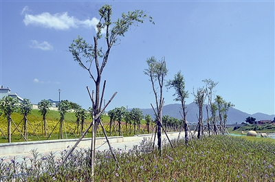 步游道蜿蜒曲折,綠茵叢中花團錦簇,綠意滿園倒映清澈溪水中,白鷺掠過激起陣陣漣漪……近日,記者來到榜頭鎮龍騰村木蘭溪沿岸景觀帶,一幅生態和諧的畫卷展現眼前(如圖)。 這是我縣打造的木蘭溪防洪生態景觀工程仙榜段C7標段,建設集旅游觀光、文化休閑、體育健身、生態保育于一體的濱水生態景觀帶。“目前已完成工程的90%, 預計10月底完工?!表椖楷F場負責人告訴記者。 該項工程位于榜頭鎮木蘭溪干流左岸,起點于象塘大橋上游仙榜公路高地,終點位于昆山橋下游仙水溪匯合口,途徑龍騰、紫澤、溪東、壩下等村居。該工程堤線總長約3.64公里,沿線景觀綠化面積6萬平方米,建設上、下層護欄。主要包括防洪堤壩工程,壩頂采用透水混泥土,搭配綠化植物;親水景觀工程,通過鋪設濱水步游道,與堤壩構成雙層景觀。 據悉,在沿溪景觀帶上,已累計種植串錢柳、桃花心木、桂花、秋楓等大型喬木3000余株,通過月季、三角梅等灌木,金邊假連翹、紫花蘿莉等草本,以及草坪科學配比,構成立體式、多層次園林景觀。隨著濱水步游道、休閑廣場等設施陸續建成,一道濱水宜居長廊,已初具規模。 |