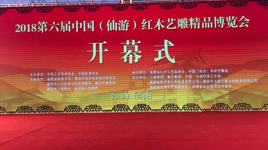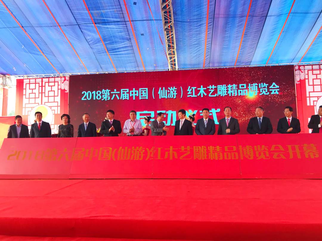 “2018年第六屆中國(仙游)紅木藝雕精品博覽會”啟幕現(xiàn)場 莆田市委副書記、市長李建輝,市人大常委會主任阮軍,市政協(xié)主席林慶生,市委常委、宣傳部長吳桂芳,副市長陳志強、陳惠黔等領導出席開幕式,并共同為“2018年第六屆中國(仙游)紅木藝雕精品博覽會”啟幕。