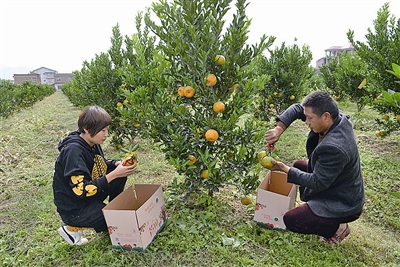 “一年好景君須記,最是橙黃橘綠時。”眼下蘆柑進入采摘時節(jié)。11月26日,在度尾鎮(zhèn)同欣生態(tài)采摘園里熱鬧非凡,該果園把一部分蘆柑采摘送外超市,一部分則通過微信朋友圈,讓城區(qū)等地游客到果園體驗采摘游的樂趣。 走進同欣生態(tài)采摘園,放眼望去,數(shù)千棵的蘆柑果樹上,滿掛著果實,黃澄澄沉甸甸的果實掛滿枝頭,壓彎了樹枝,好生誘人。記者了解到,該采摘園有10余種柑橘類品種,大約有5000多株,從重慶引進地就有8個品種。現(xiàn)在已經(jīng)進入蘆柑采摘期,預計可以采摘到12月底,這些蘆柑除了供游客采摘外,大多數(shù)將銷售大附近城市的超市中。此外,采摘園還植桃子、芒果、百香果、蓮霧、樹葡萄、巴西櫻桃、火龍果、柑橘等水果近20個品種,基本形成了一年四季‘有花有綠,有蔭有果’的生態(tài)花園式風格。 “度尾鎮(zhèn)一直都有種植蘆柑的歷史,而且得天獨厚的地理優(yōu)勢,使得這里的蘆柑個頭更加大,味道更加甘甜,在90年代就遠銷東北、河南等多個省份。”該采摘園管理員林瑞火告訴記者,今年是這片蘆柑第一次掛果,遇上大年,開花的季節(jié)天氣晴好,掛果率非常高,為讓果樹能長得高大些,我們采取蔬果處理,這片土地生態(tài)環(huán)境優(yōu)良,日照時間長,又是紅土壤,非常適合蘆柑生長,如今,每個蘆柑個頭重達200余克,十分喜人,廣受客戶青睞。 在果園里,記者正好遇上榜頭鎮(zhèn)居民陳琦。“我們是通過微信朋友圈得知這里的蘆柑可以自己采摘,便來采一回。“陳琦與記者攀談起來,現(xiàn)在流行采摘游,特別是周末帶孩子來體驗生活、親近大自然是一個不錯的選擇。如今不用跑永春,就可以在仙游本地吃到正宗蘆柑;也可以來這里散散心,呼吸果園新鮮空氣,同時看看度尾鎮(zhèn)海峽藝雕成周邊景點,自己動手體驗一把采摘樂趣,實屬過癮。從蘆柑采摘游,又延伸到農(nóng)家樂。 “周末來采摘多是拖家?guī)Э冢话闵衔鐏恚挛缱撸形缥绮驮趺唇鉀Q,于是我們就想到做農(nóng)家樂。”林瑞火說,果園周邊種不少蔬菜,游客可以在這里自己煮大鍋飯或者燒烤,體驗回歸自然的感覺。 |