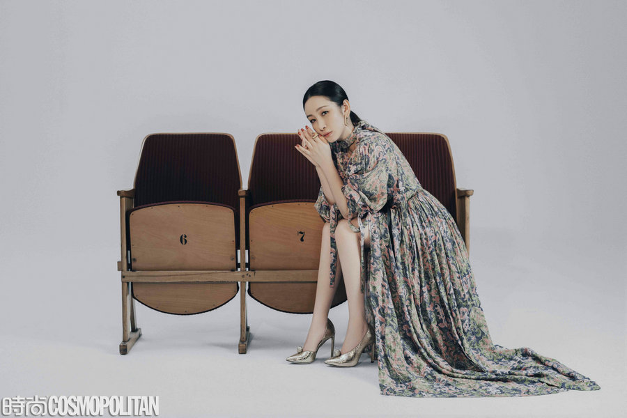 近日,秦海璐的一組復古大片曝光。片中,秦海璐或身著碎花長裙搭配金色高跟鞋,半坐復古影院木椅上,眼神堅定溫婉淡然;或身著墨綠色印花連衣裙,頭發利落梳起,點綴綠色植物相得益彰,別樣魅力盡顯。