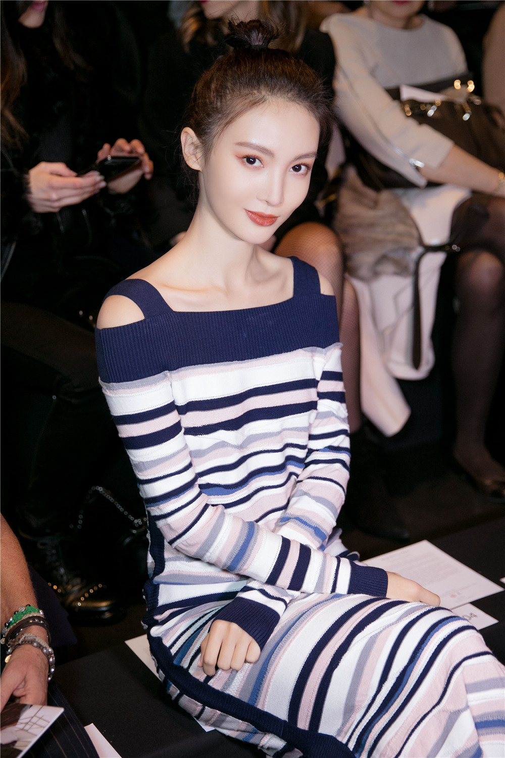 2019秋冬大秀現場,金晨身著該品牌長裙配以清新自然的妝容亮相,散發獨具靈氣的時尚魅力。清麗的粉彩色條紋長裙配以極簡風一字帶高跟涼鞋,獨特的肩帶設計更將V字鎖骨顯襯的格外搶眼。金晨甜美清新的妝容與柔美精雅的條紋長裙相得益彰,與時尚力MAX的米蘭糅合碰撞。