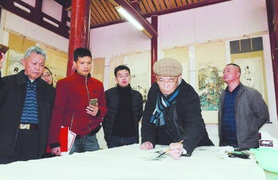 年過八旬的孫仁英依然每天堅持繪畫。 2017年春節期間,包括孫仁英在內的原李耕國畫研究所10位畫家作品展在仙游文廟展出。孫仁英現場作畫,引觀眾圍觀品賞。趙賀民攝 2018年11月,孫仁英中國古典人物畫作品展在李耕故居舉行。趙賀民攝 孫仁英作品《鑄劍圖》 在中國近現代美術史上,李耕與齊白石并稱“南李北齊”,并與李霞等開宗立派創立“仙游畫派”,同時開創了全國首例以在世藝術家名字命名設立的“李耕國畫研究所”。作為李耕晚年最近身的閉門弟子,他25歲時拜李耕為師,伴隨大師左右近5年,得其真諦而漸成為一位著名的古典人物畫家。他就是孫仁英。 孫仁英,1934年生于仙游。中國美術家協會會員、福建省文史館館員、仙游李耕國畫研究院名譽院長。 孫仁英師從我國古典人物畫大師李耕,承其衣缽,系李耕國畫藝術主要傳人之一。其創作的《竹林七賢》被國家永久性收藏,懸掛于人民大會堂;《女媧補天》《鑄劍圖》《高士》《桔頌》等近百幅作品先后參加由中國美術家協會、國家博物館、中央文史研究館、中國美術館、中國郵票博物館等單位舉辦的全國展覽并獲獎;出版有《孫仁英古典人物畫集》《當代實力派畫家:孫仁英作品專集》《中國美術家協會會員圖冊(孫仁英)》等。 緣起:摯愛藝術緣遇先生 孫仁英的曾祖父系道光年間欽賜文魁。本是書香門第,到了父輩,他們卻喜歡經商。獨獨孫仁英與眾不同,自幼偏喜歡畫畫。 小時候,孫仁英家住仙游龍星街(現二保街)。那時,隔壁是個牙醫店,孫仁英經常從牙醫店拿些廢棄的粉模,以買來的李霞畫冊和在許多店堂里看到的李耕作品為樣板,在街道上到處臨摹亂畫,或到當時城里一家叫“三明同興”的宣紙專賣店買來宣紙作畫。 15歲那年,孫仁英初中畢業。父親要他學做生意,他卻是一點興趣也沒有,依然喜歡畫畫和手工藝。 父親雖不情愿,但孫仁英自有他的“護身符”——在伯父的支持下,孫仁英得以棄商從藝,開始學做木工。 但業余時間,畫畫仍是孫仁英的心頭摯愛。 他堅持習畫,并經常向附近的老師請教。其間,得到多位老師的悉心指導和縣領導的關心關注。他經常應縣里邀請為有關部門創作各類宣傳畫和參加各種展覽活動,并開始向各級報刊投稿,作品經常被《福建日報》采用,多次入選全省美展。后又被縣工會推薦,先后到仙游縣公安局、晉江地區公安處和省公安廳負責宣傳工作。 其時,孫仁英仍不覺得自己已經叩開了通往美術界的大門。但作品屢受肯定,還是讓這位清瘦的青年愈發斬不斷自己的藝術情愫。 1959年,為繼承、發掘、搶救和整理李耕的傳統國畫藝術,省里決定成立“李耕國畫研究所”。同時,要選拔2位國畫基礎較好的青年跟隨李耕學習,繼承他的傳統國畫技法。縣里首先確定要調進時任仙游師范學校美術教師的陳毓和,陳毓和又向上極力推薦當時正在省公安廳工作的孫仁英。 “聽到縣里要調我去跟李耕先生學習國畫的時候,我心里十分高興,毫不猶豫答應了下來。”放棄人人羨慕的公務員身份,近身學藝當“學徒”,這個在當時很多人看來甚是艱難的抉擇,卻是孫仁英夢寐以求的機緣。 他與李耕的師徒情誼,以及他的藝術成長之路,也是從這一個堅定的點頭開始的。 承志:得其真諦漸成名家 孫仁英現居于仙游八二五大街的一處小巷,在其二樓畫室的畫案前,一直擺放著其恩師李耕的照片。已屆耄耋之年,孫仁英依然以其旺盛的精力和高昂的創作激情活躍于中國畫壇,這與他和李耕的師徒往事分不開。 李耕國畫研究所剛成立時,設在仙游縣文化館辦公的祠堂內。作為百里挑一被選調進研究所的弟子,組織上讓孫仁英跟隨李耕習畫的同時,還要負責李耕的日常和生活用度。為此,他經常陪伴李耕左右,備受李耕的關心和器重,也最能深刻領悟李耕“初學畫,效先賢,嚴法度。基礎既奠,要重觀察,創新意,求于有法處變無法,力圖不落前人窠臼”的道理。 李耕的畫作筆力酣暢、氣勢雄健,要學習他的傳統國畫藝術,須先學好他的工筆畫。但彼時李耕已年屆古稀,藝術也進入至高境界,平時創作的作品,大多是半工寫和大寫意,很少畫工筆。盡管孫仁英早有美術功底,跟隨李耕學畫后,畫藝也大有長進,作品經常被推薦參加全國、省、市大展并頻頻獲獎,但各方領導的關心和關注,還是令他感到壓力很大,唯恐自己跟不上、學不好。 “不想繼續學,想離開研究所”的念頭開始在他心頭盤旋,并不時流露出來。不知誰把消息傳到李耕那里,一天,李耕特地走到孫仁英身邊坐下,對他說:“仁英,我告訴你,你就按現在的畫法堅持畫下去,工筆慢慢再學,詩詞方面我也會教你。你會有所成就的。” 李耕的一席話,留住了孫仁英,也成就了孫仁英。 此后,孫仁英不僅跟隨李耕刻苦習畫,同時遵循恩師的教導,大量研習前人作品、大師畫論以及傳統藝術文化,取其精華,觸類旁通。他的作品取材意向與李耕相似,多是民間傳說故事,如仙佛、高士、仕女兼山水、花鳥等。然而,他又有自己的創新,獨步于自己的藝術境界之中,終成一位頗有成就的古典人物畫名家。 活躍中國畫壇數十載,孫仁英多次應邀在北京、上海、廈門、西安等地舉辦畫展,《女媧補天》《鑄劍圖》《高士》《桔頌》等近百幅作品先后參加由中國美術家協會、國家博物館、中央文史研究館、中國美術館、中國郵票博物館等單位舉辦的全國展覽并獲獎