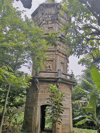 在我縣榜頭鎮昆侖村的后山坡上,至今還保留著一座明代的石塔(如圖),這也是目前我縣境內保存較為完好的古代石塔之一。 據《榜頭鎮志》記載:“槐塔為明崇禎四年(公元1631年)云莊王懋卿、王獻卿、王銓卿兄弟所建”。書中記載,王懋卿三兄弟,自是“三槐王氏”后裔,功名成就之時,遂于故鄉建塔,彰顯祖德,砥礪后人,故名“槐塔”。 日前,記者慕名前來,一睹石塔風貌。來到塔下,抬頭可見槐塔一共有四層,為八角形仿木樓閣式,塔身用條石砌成,通高20米,寬12米。塔壁六面刻有浮雕壁畫,上設平座回廊,護以欄桿。槐塔設計精巧,雕刻精細。底層南北開門,塔門兩旁鐫刻對聯。第二層南北面各飾有魁斗神像,神像兩邊的對聯是“鵲走三臺臨國族,蟬聯五色護魁星”,正中匾文“綱張奎壁”,另一為“紫柏開天”,兩旁塔柱雕有圖案。第三層為南、東北、西北三面開門。塔頂為平臺,塔尖為葫蘆式。 據了解,槐塔建成至今300多年仍保存完好,民國十九年(1930年)八月重修,后因塔基崩裂于1986年7月修繕,1997年被仙游縣人民政府列為縣級文物保護單位。 |
