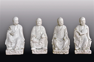 仙游文化底蘊深厚、能工巧匠眾多,飲譽四海。在蓋尾鎮龍紀寺,鎮寺之寶——瓷雕五百羅漢群像,更是佛教文化和陶瓷文化的璀璨明珠。 龍紀寺,始創于漢末,敕建于唐初,明朝開始香火興旺。龍紀寺構造相比其他有所不同,由上下兩座組成,上座供釋迦牟尼佛,下座祀上帝。上帝殿是龍紀寺最有代表性的建筑物,殿頂六角飛檐形狀,獨具風格,也叫六角亭。六角亭正中為八卦藻井,昂首仰望,恍如進入八卦陣。據介紹,六角亭內屋頂是木質結構,造形八卦斗拱,精雕細刻,深透三層,顯示了能工巧匠們的高超技藝。 六角亭四面壁柜上,設有佛龕,供奉五百羅漢。14個佛龕環繞殿宇外墻一周,每個龕分五層,排列尊者。透過玻璃窗,記者看到里面的尊者瓷雕千姿百態,有的正襟危坐,有的捧腹搔耳,有的低頭凝思,喜、樂、嗔、怒,表現得惟妙惟肖,異常逼真。佛龕上還掛有篆刻金字的木質板,記述五百羅漢的法名。 據史料記載,清光緒二十五年,龍紀寺的住持瑞義祖師在動工興建六角殿宇的同時,請國畫家李霞繪制五百羅漢圖稿,請泉州德化瓷雕大師許友官、許友簪、許友義兄弟,制專板雕塑燒制,歷時十余年,才把五百羅漢燒制出來。每尊羅漢雕工精細,高22厘米,大小相近。 記者了解到,五百羅漢像一般為畫像、塑像兩類,全國塑有五百羅漢像的寺廟不多,只有大寺名剎才有。而仙游龍紀寺的五百羅漢是潔白無瑕的瓷雕,具有極高的藝術價值。為了保護稀有的瓷雕五百羅漢群雕珍品,1991年,瓷雕五百羅漢被列為省級文物。 與五百羅漢群像遙望的是盤龍臺石雕。龍紀寺上殿依地形而建,比下殿高突起一層樓,樓臺上有一對浮雕石龍柱和一個浮雕石龍盤臺座,盤龍翻騰,造型奇特,臺基上又雕有四只石獅、一只麒麟,并刻有回文詩句“梵香獨坐誰是伴,自與佛經結靜緣”,意境深遠,令人回味無窮。 圖為瓷雕羅漢。 |