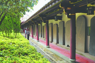 ①文廟里的瓜形柱礎 ②巨幅木雕作品《孔子圣跡圖》 ③大成殿中的八卦藻頂 仙都碑碣古韻遺風 它留有科舉的痕跡,燦爛的大家書畫作品迎來送往;它擁有價值不菲的石碑、雕刻,特殊年代里化身成為典雅精美的戲劇舞臺。 它是縣學所在地,是古代仙游縣儒學教育的歷史見證,承載著習武、讀書、中小學校舍、政干所所址、縣參議會會址、文化局舊址等功用,隨著歷史的風雨,不斷變遷。 仙游文廟,歷經千年,滄海已桑田,它依舊屹立,保存著一方歷史文脈。無論是等級還是規格,無論是建筑還是藝術價值,文廟都可圈可點,可謂有大美而默存于此地。近日,記者專門探訪了這座歷史建筑群。 A 歷史變遷,難掩建筑之美 在仙游縣鯉城街道辦城內街師范路1號,矗立著一座上規模的建筑群——仙游文廟。“宋咸平初,仙游文廟屹立于大蜚山之麓,木蘭溪之濱,迄今已越千年。”仙游文廟重修記的石碑上,記載著這個建筑群的年齡。 現任仙游縣博物館館長茅玉香介紹說,文廟坐北朝南,總占地面積為7600多平方米。中軸線上自南而北依次為綽楔門、泮池(泮橋)、戟門、甬道和月臺(東西為兩廡)、大成殿、磚埕、崇圣祠(有東西配殿);崇圣祠前西側為文昌閣,后為藏書閣;大成殿東面為明倫堂,明倫堂以堂之前兩廊連接南面儀門,儀門前為墨池;戟門西側為鄉賢祠、東側為名宦祠。 仙游文廟是古代仙游最大的教育場所,這里的許多建筑都與教育相關。拿墨池來說,相傳它是學生苦讀,常常在池中洗墨筆而成;東西面的兩廡,即兩個走廊,是以前學子考試的地方;泮池,呈半月形狀,上跨平梁式石構泮橋,古代的學生要入學,都要從橋上經過,如果中了狀元,歸來也要從橋上經過,所以泮橋又稱狀元橋。大成門的中間大門常年不開,只在祭孔大典時才開,平時只走兩側的掖門,東稱“金聲”,西稱“玉振”,而“金聲玉振”則用來贊美孔子的聲名遠揚。 據仙游縣博物館原館長陳職儀介紹,仙游的文廟形成時間可追溯至唐代,建于臨近今天仙游縣大濟鎮所在的地方,后遷至西門兜(今城隍廟),宋初才遷至今址。 為什么要遷到此處?古人重風水學,縣學選址關乎當地的文脈,其重要性不言而喻。陳職儀說,根據當時地理形勢,仙游如一只鳳,今天文廟所在的地方正值鳳嘴處。《仙游縣志》曾記載此地“誠為地辟奧區,用妥圣靈者”。 今天,仙游文廟依然保存著不可估量的價值。陳職儀歸納它“規模大、藝術高”,其中石雕、木雕和彩繪藝術造詣甚高。 走進廟里,游客很難不被那四對石柱所吸引。這些清代蟠龍浮雕石柱均出自石雕大師郭懷師徒之手,形象逼真、立體感強,動態威嚴,為全國少有。細看雕花,有鯉魚為頭,最后化成龍的樣式,寓意魚躍成龍的過程,也蘊含仙游“九鯉湖”的傳說。其底部的柱礎有四方形、六面形、圓形、瓜形等多種式樣。茅玉香說,這些柱礎在中國傳統磚木結構建筑中用以負荷和防潮,對防止建筑物塌陷有著不可替代的作用。 此外,高大開闊的大成殿內有著名的八卦藻頂,狀如“蜘蛛結網”,不用一釘而自成。中有兩條龍抓著一塊印章,四周彩繪河圖、洛書。大殿內和前檐下的斗、拱、雀替、駝峰、吊柱(垂蓮柱)精雕細刻,賦彩漆金,美不勝收。 作為福建四大文廟之一,仙游文廟還被省文化廳公布為涉臺文物古跡,擁有珍貴的歷史文化遺產和涉臺文物,其中仙游籍臺胞鄭元水贈送“至圣至仁”牌匾即是見證。 2013年5月,仙游文廟被列為第七批全國重點文物保護單位。 B 全面修復,美與缺憾并存 文廟自宋至今,前后歷經60多次的修建,難得保存了今天的大成殿、明倫堂、崇圣祠和戟門等建筑物,格局基本上為乾隆四十五年(1780年)重建時的原構。 2006年10月,仙游文廟成立了陳金敏、嚴明訓等德高望重的老人為成員的仙游文廟董事會,2006年至2015年期間,董事會實施了百年間最全面的一輪修繕和建造工程,籌資千萬元,啟動了修復千年文廟的“民心工程”。 “三年間,籌募巨資,復修舊建筑群,重建文昌閣、藏經閣之屬,規模宏偉壯觀,全貌煥然一新,風格古樸典雅。”在仙游文廟重修記中,仙游退休教師謝亞榆這樣寫道。 董事會先前往山東省孔子老家參觀取經,緊接著在三年里向鄉賢、臺胞、海外僑胞等多方籌資,其中還得到省文化廳90萬元涉臺文物專項修繕經費,主要進行含大成殿維修、崇圣祠修復、文昌閣復建、巨幅木雕《孔子圣跡圖》制作及綠化、亮化工程等。 這當中,巨幅木雕《孔子圣跡圖》的誕生意義非凡。謝亞榆回憶說,董事會在去山東取經的時候,也順帶將孔子從誕生到辭世的36幅圖請了回來。充分發揮“仙游國畫之鄉”的文化底蘊,董事會請李耕國畫研究所根據鄒城《孔孟圣跡圖》的方案,進行再設計。當時可謂集結了仙游工藝界名師力量,采用進口花梨木進行雕刻,用連環畫形式依照編年史序編輯而成,反映孔子一生的主要活動。 集資進行全面修繕,而修繕的過程,也透露出人力的難及之處。 今天,當游客走進文廟,在贊嘆古人的工匠技藝的同時,也可明顯見到曾經的彩繪剝落嚴重。“這些大膽的色彩,現在已經找不到原材料了。”茅玉香說,當時董事會在修復大成殿上的檐角,由于色彩搭配與原先差異過大,維修一半便停了下來,技藝尚缺,不敢造次。 值得一提的是,仙游文廟保存了一塊南宋年間的戒石銘,出自北宋黃庭堅的手書。戒石銘南向刻“公生明”三字,北向刻銘文十六字:“爾俸爾