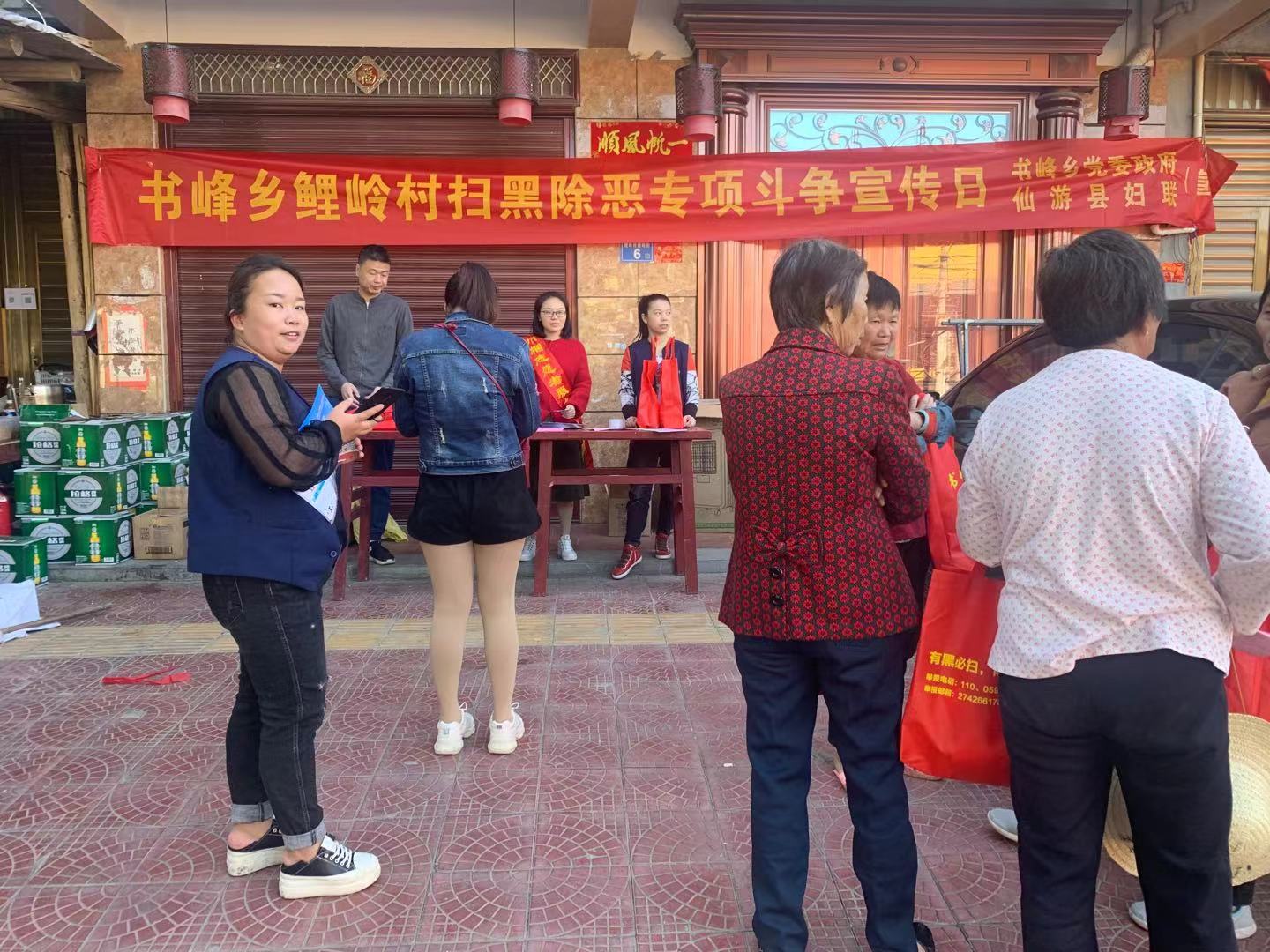 11月15日,仙游縣婦聯組織巾幗志愿者走進書峰鄉鯉嶺村,開展掃黑除惡專項斗爭宣傳活動。