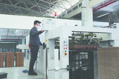 19日,在仙游成聯包裝有限公司的生產車間內,員工在生產線上操作。至當日,仙游規上工業企業已復工187家,復工率71%;預計月底復工率達96%。