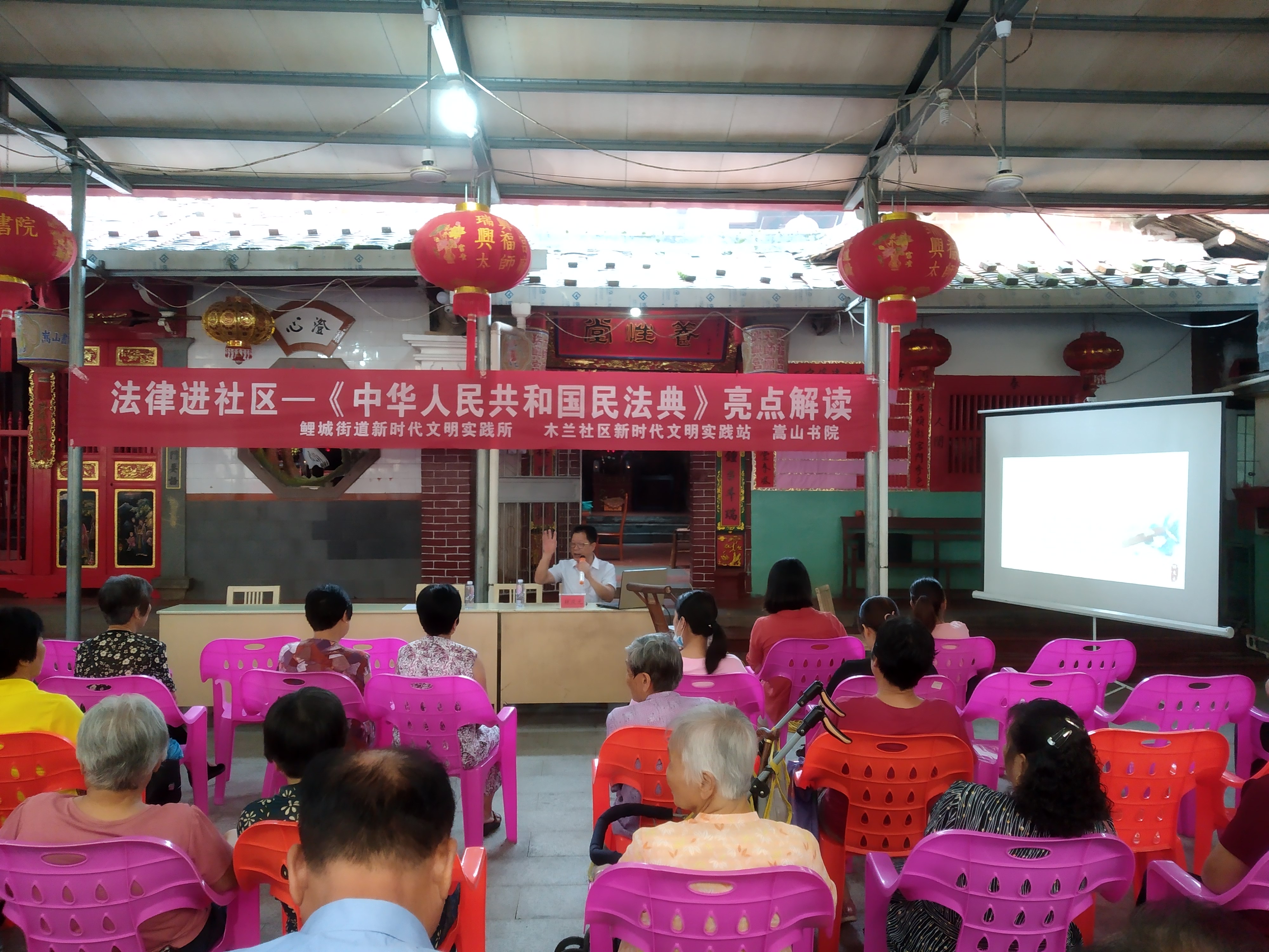 活動中,縣醫患糾紛調解委員會主任、全國人民調解專家林慶元為群眾解讀《民法典》。他結合現實案例,從胎兒權利、婚姻家庭與繼承及侵權責任等為居民們詳解法典中與老百姓生活息息相關的規定和亮點,案例生動形象,言語通俗易懂,居民們在臺下安靜聽、細細品、認真記。