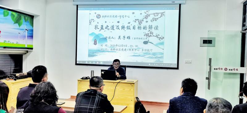 12月9日,仙游縣作家協會在鯉城街道南橋社區“黨建+”鄰里中心舉辦送國學進社區活動,開展“孔孟之道及終極目標的解讀”主題的公益講座,傳承弘揚中華民族優秀傳統文化。