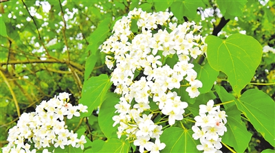 攜一縷淺夏的芬芳五月,正是油桐花開的好時節。5月4日,記者在大蜚山省級森林公園看到,上千畝油桐花競相綻放。漫山遍野的白色油桐花在綠色山巒的襯托下,純潔奪目,仿佛群山飛雪,把寂靜的山野裝扮得格外生動美麗。 漫步山野,從九龍巖水庫至九龍巖寺,一簇簇潔白無瑕的油桐花散落山間彎曲的小路;居高望遠,以青山為底,朵朵白色油桐花宛若給碧綠的山頭覆蓋了一層“白雪”。 “油桐簇簇惹人憐,郭外風光景色妍。”據悉,油桐樹是大蜚山上常見的喬木,其花期較短,從每年4月底開始,僅半個月左右,被譽為“五月雪”。各位愛花的市民朋友們,可以相約打卡了。