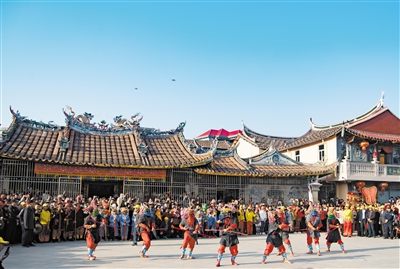 2月17日是農歷正月初八,楓亭鎮麟山宮元宵巡游隊伍回宮,富有特色的非遺“皂隸舞”亮相(如圖),各地游客紛紛前來爭睹這一省級非物質文化遺產的魅力。 當天下午2時30分許,麟山村麟山宮廣場熱鬧非凡,來自38個宮廟的龍虎旗、車鼓隊、管樂隊、馬隊等先后登場表演,參演人員均著盛裝,鼓樂齊鳴,浩浩蕩蕩。壓軸出場的便是萬眾矚目的“皂隸舞”表演,只見幾十名皂隸舞參演人員各司其職,分旗牌官、皂隸、伴奏和八班等。其中8名裝扮古樸、頭戴樟木面具的男子,手執竹杖,足登草履,伴隨樂鼓聲,時而面對面,時而背靠背走起舞步,舞姿古樸粗獷、動作干練簡潔,現場顯得莊重肅穆。游客們人山人海,紛紛拿出相機,記錄這一非遺盛宴。 據文獻記載,“皂隸舞”由西漢時期的“儺舞”演變而來,屬于我國古代驅邪除妖的民間舞蹈。“皂隸”頂插五色紙絲花,頭戴各式猙獰獠牙面具,有紅、藍、青、黑等顏色,手執竹仗,穿黑衣紅褲,腰系紅布條,腿托綁帶,足蹬草鞋,氣勢威猛。表演動作有“盤腿跳”“左右跳步”“左右望”“左右擺”等,節奏干練、動作質樸。經過代代民間藝人的傳承和完善,麟山宮“皂隸舞”形成一套完整和獨特的舞蹈表演形式,目前已列入省級非物質文化遺產名錄。 |