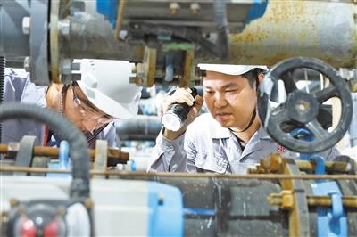 中哈員工在凈化水儲罐廠區(qū)交流工作。 員工檢查車間內(nèi)的超濾進水閥。 以上圖片均為朱永俊攝 中企投建的哈薩克斯坦KBM油田采出水處理廠(KBM項目)不久前正式投產(chǎn)。KBM項目是中資企業(yè)在哈薩克斯坦及整個中亞地區(qū)生態(tài)環(huán)保領(lǐng)域的標(biāo)桿項目,由中國中信集團旗下中信環(huán)境投資承建。該項目共有4條淡水生產(chǎn)處理線,污水處理能力達4.25萬噸/天,產(chǎn)出淡化水能力達1.7萬噸/天,可滿足整個油田約90%的工業(yè)用水需求,同時有效解決當(dāng)?shù)厮Y源緊缺、環(huán)境污染等重大民生問題。 |