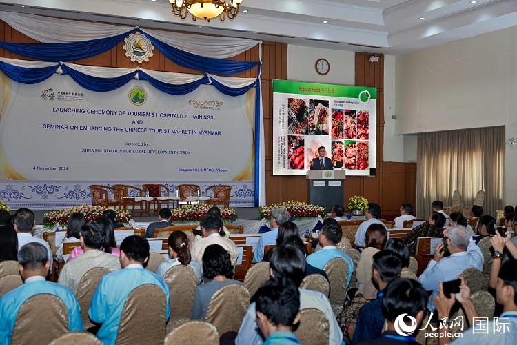 李千國參贊在研討會上分享中國旅游目的地開發與推廣經驗。人民網記者 謝佳君攝 人民網仰光11月5日電 (記者謝佳君)11月4日,緬甸旅游與飯店業培訓班開幕式暨中國旅游市場研討會在仰光舉行。緬甸飯店與旅游部部長岱岱楷、中國駐緬甸大使館參贊李千國、中國鄉村發展基金會緬甸辦公室主任林媛、緬甸旅游聯合會主席仰溫及當地業界代表150余人出席活動。 岱岱楷致辭表示,感謝中方對緬旅游業發展的支持,相信此次活動將有利于提升緬甸旅游服務水準。 李千國在活動上介紹了中國旅游業發展現狀,分享了旅游目的地開發與推廣經驗。中國國際航空股份有限公司代表推介了本公司國際運力和中緬航線產品。 本次培訓班由緬甸飯店與旅游部主辦、中國鄉村發展基金會協辦,將持續20天,涵蓋導游、旅行社及酒店業等多方面培訓內容,來自緬甸多地的200余名學員分批次參加培訓交流。 據了解,近年來,中緬組織了旅游人力資源開發培訓、烘焙和糕點制作培訓、文化遺產地旅游可持續發展研討會、雙語導游雙語手冊編寫等合作項目。 |