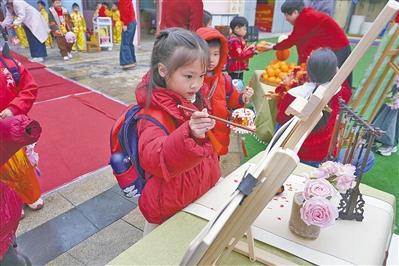 點春 昨天是新學期開學首日,鯉南幼兒園以“春”為主題,開展了“點春、插春、報春、咬春、戴春”五項特色開學活動,引領孩子們在沉浸式的體驗中領悟自然時序的變遷,播下成長的夢想與希望。 活動伊始是“點春”環節,小朋友們手持蘸滿朱砂的毛筆,在柳樹枝條上輕點紅點,象征著喚醒春日,寓意生機盎然、蓬勃發展;“戴春”環節,老師為孩子們戴上精心準備的花冠,將春天的美好與祝福佩戴于身,寓意孩子們如花般綻放,茁壯成長;“插春”環節,孩子們親手將花枝插入花瓶,寄托著對成長的深切期待與美好愿景;“咬春”環節,孩子收到統一分發的橙子,寓意“心想事橙”,為新學期的美好征程拉開序幕;“報春”環節小朋友們敲鑼打鼓,用響亮的聲音宣告春天的到來,將活動氛圍推向小高潮。活動尾聲,老師們為孩子們分發心愿紙,鼓勵他們寫下新年的期許與夢想。