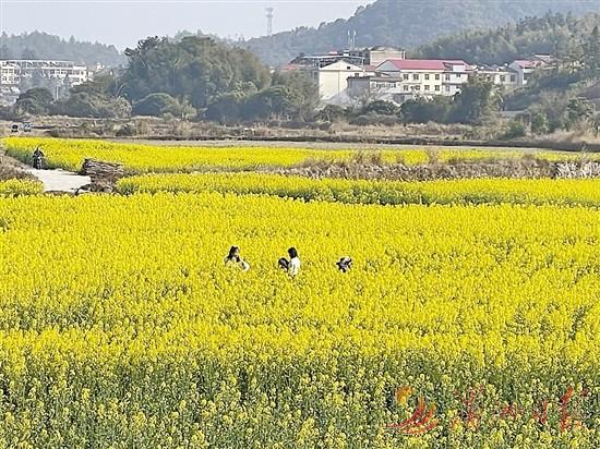 游客徜徉在油菜花海中。 田園空闊無桃李,一段春光屬菜花。連日來,仙游縣九鯉湖景區所在的鐘山鎮湖亭村油菜花盛開,游客紛至沓來。 3月1日適逢周六,記者沿縱三線驅車數十分鐘來到該村,但見兩側金黃綢緞般的花田裹挾著柏油路蜿蜒至天際,游人踩著碎金穿行其間。提著裙裾的姑娘們將自拍桿伸進花叢,發梢與嫩蕊一同顫動;頑皮的孩童們在田間奔跑嬉戲;網紅對著鏡頭聲色并茂地解說;田邊老農笑看阡陌間千百張笑臉…… 仙游一家企業女工林詩倩與2個閨蜜相約來此打卡。天氣晴好,她們都喜歡賞花,在陽光明媚的春日,去戶外邂逅一場花事,才不負春光不負花。 在花田里拍照的祖孫三代5口人,引起記者的注意。既是兒子又是父親的黑龍江省雙鴨山市青年男子鄒元亮在莆田從事文化創意工作,是莆田女婿,兒子才4歲。今年將年近古稀的父母從冰天雪地的東北老家接來溫暖如春的莆田過年。當日帶著一家人到九鯉湖景區游覽,意外發現景區外竟有如此美麗的金色花海。鄒元亮的母親笑稱:“我們從沒見過油菜花,嘖嘖,老天爺定是偷喝了臘月釀的甜米酒,才撒了這般潑天的富貴色!”鄒元亮的父親說:“莆田氣候宜人,風景如畫。要不是惦記著老家的幾分地,我們住下都不想回去了。”鄒元亮則以“遍野流金映日黃”形容這兒的油菜花美景。 鐘山鎮分管宣傳的四級主任科員林丹丹介紹,近年來,鐘山鎮因地制宜堅持“小而精、小而特、小而美”的文旅融合發展思路,打造體驗式沉浸式場景,讓老百姓暢享家門口的“詩和遠方”。采取“基地+農戶”等模式,在湖亭、卓泉、南興、東溪等村廣植2800余畝油菜花,同時發展庭院經濟,探索景村融合的鄉村振興新路。如今,游客途經湖亭至九鯉湖,不僅可以欣賞到大片金黃油菜花盛放的美麗風光,一間間“精耕細作”的小庭院也令人心曠神怡。悠游其中,可見青磚砌筑、青瓦鋪貼的庭院小筑之間,點綴著流水潺潺、云霧繚繞、燈光氤氳等古風元素,九鯉湖的標志性元素巧妙地融入庭院中的鯉魚池中。村民“就地取材”利用自家磨盤、陶器等閑置物品作為裝飾,打造出古色古香、別具一格的“風雅湖亭”。 |