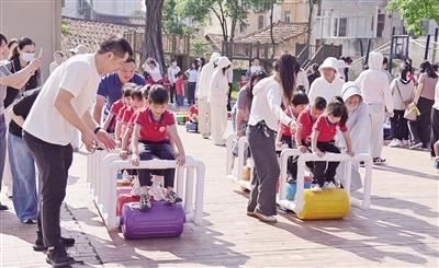 闖關 奔跑 5月14日、15日,城東幼兒園開展親子跑酷活動,這場別開生面的活動倡導家庭共同參與運動,共享健康生活。 活動現場,孩子們和家長組成“最佳拍檔”,共同挑戰精心設計的趣味賽道。賽道上家長和孩子一起奔跑、跳躍、闖關,親子間默契的配合、鼓勵的吶喊,讓整個賽場洋溢著溫馨與歡樂。 以“運動即生活、親子關系重構、家園課程共建”為三維目標,該園打破傳統晨間運動的碎片化模式,打造“主題情境、運動賦能、文化浸潤”的立體運動生態。旨在通過運動和游戲,提升幼兒運動能力的同時,為家長和孩子創造親密互動的機會,增進親子情感交流。 另悉,在日常教學中,該園還創新推出“每月一主題”運動課程,為家庭提供親子運動建議。如本月推薦運動項目為“頭傳球后空翻”“開河造橋”親子運動。小手拉大手,全家動起來。通過運動連接家庭、幼兒園與社會,實現“身體動起來、思維活起來、情感暖起來”。 該園相關負責人表示,接下來會繼續深化家校社協同育人機制,定期開展形式多樣的親子健康活動,讓健康生活的理念深入每個家庭。 |