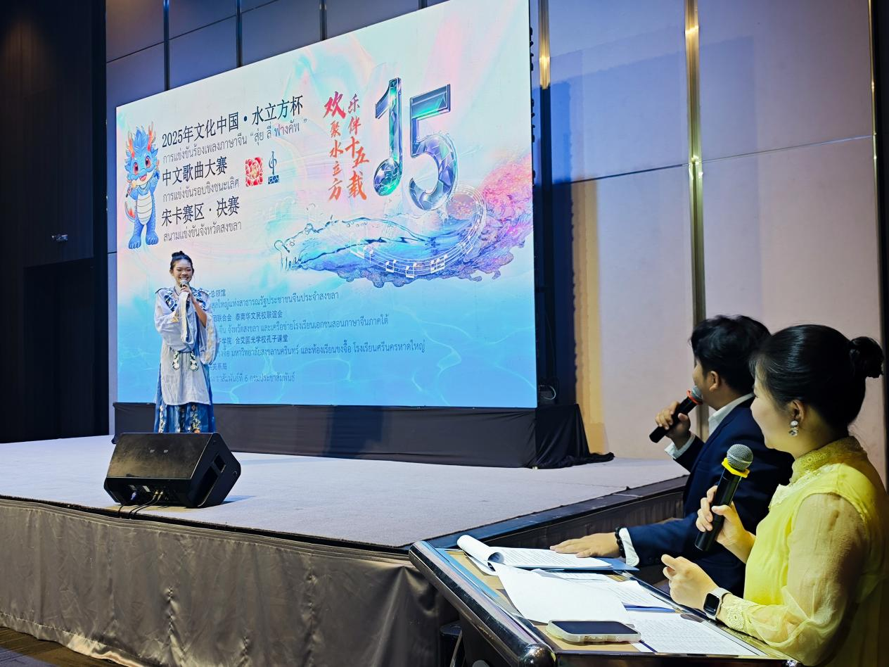 比賽現場。主辦方供圖 日前,2025年“文化中國·水立方杯”中文歌曲大賽泰國宋卡賽區決賽在合艾成功舉行。 經過前期緊張激烈的初賽,少年組20位選手從200多名參賽者中脫穎而出,站在了決賽的舞臺上。他們同臺競技、展現才華,共同打造了一場精彩紛呈的音樂盛宴。孩子們以音為媒,以聲傳情,共同用歌聲傳唱中泰友誼深入人心。 決賽現場座無虛席,氣氛熱烈。參賽選手們以飽滿的熱情和精湛的技藝獻上了一場視聽盛宴。一首首旋律動人的中文經典曲目在他們的演繹下煥發出新的生命力,贏得了觀眾的熱烈掌聲和喝彩。比賽間隙還有青年組優勝選手助興演唱,為現場觀眾帶來了更多的驚喜和歡樂。 “水立方杯”海外華人中文歌曲大賽作為一項全球性賽事已走過14年光陰,累計吸引5萬余名選手參賽,成為全球僑界及海外中華文化愛好者共同參與的音樂文化盛會。今年年初,中國駐宋卡總領館為慶祝中泰建交50周年,同北京有關單位協調在宋卡設立新賽區。在宋卡府泰中僑團聯合會、泰南華文民校聯誼會的積極承辦下,從今年起正式設立“水立方杯”比賽宋卡賽區,為泰南14府的選手參賽提供了便利。該項比賽在泰南地區獲得廣泛關注,初賽報名人數逾200人。經過層層選拔,最終4名獲勝選手將晉級比賽并赴北京參加為期12天的音樂夏令營。 |
