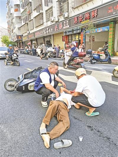 9月9日上午9時許,鯉城街道黨校路發生一起交通事故,一名六旬老人騎電動車時被后方車輛突然變道“別車”,失控摔倒在地,無法動彈。所幸正在附近開展平安宣傳的洪橋社區網格員林彧第一時間上前救助,有效防止二次事故發生,并協助將老人安全送醫。 事發早高峰時段,車流人流量大,老人摔倒后電動車滑出半米遠,其本人趴地不起、傷勢明顯。網格員林彧在分發宣傳手冊時聽到響聲,立即奔赴現場。他迅速擋在老人側前方,揮手引導車輛繞行,高聲提醒過往行人車輛注意避讓,快速建立起臨時安全區域。 林彧一邊安撫傷者情緒,一邊仔細查看傷情,并迅速撥打急救電話,準確說明事發位置和老人狀況。在等待救護車期間,他始終半跪在老人身旁,以身體作“屏障”護住傷者,不斷與其交談以緩解緊張情緒(如圖)。救護人員抵達后,林彧積極配合救助,協助將老人平穩轉移至擔架并送上救護車。待救護車離開后,林彧才返回工作崗位。他的迅速反應和暖心舉止贏得現場群眾紛紛贊許。 記者了解到,截至目前,經過縣總醫院及時救護,受傷老人已無大礙。 |