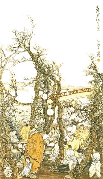《春夜宴桃李園》 木蘭溪奔流不息,孕育仙游燦爛文明。度尾鎮中岳村,曾走出一位與齊白石并稱“北齊南李”的 畫壇巨匠——李耕。這位集文人畫、職業畫與民間畫特質于一身的藝術大師,用一生筆墨為仙游國畫藝術注入靈魂,更以“李耕畫派”的薪火傳承,在中國畫史上寫下濃墨重彩的篇章—— 今年是李耕誕辰140周年,由縣委宣傳部、縣文旅局主辦,福建博物院、仙游縣博物館、仙游李耕國畫藝術研究院聯合承辦的“一笑娑婆自在天——李耕誕辰140周年紀念展”10月24日在福建博物院啟幕,并將持續至2026年1月3日。展覽中,李耕的《達摩渡江圖》《皆大歡喜圖軸》《東坡笠屐圖軸》《賣炭翁圖軸》等70余件(套)經典佳作悉數亮相,透過這些珍貴的佳作,讓我們共同回望一代大師深厚的藝術造詣與薪火傳承。 1 鄉野筑基 畫壇崛起的傳奇人生 1885年,李耕生于仙游縣度尾鎮一個貧寒的民間繪畫世家,原名李實堅,字硯農,號一琴道人。祖父李泰系與父親李墀的壁畫技藝,是他最早的藝術啟蒙。七歲時,他便能以木炭描摹莆仙戲舞臺人物,筆觸間已見靈性。童年的他隨父奔波于鄉野寺廟,繪制丹青繡像與壁畫,那些穿梭于梁柱間的線條,早已融入他的血脈。 將中國古代典籍的傳統故事轉換為藝術形象,是李耕嘗試繪畫藝術的根基,當地秀才邱明奎、張立夫賞識其才華,授以古典文學與書法,讓他得以在筆墨之外,涵養詩文底蘊。他師法上官周、黃慎等先賢,更遠溯顧愷之、吳道子的藝術精髓,主張“效先賢、嚴法度、堅基礎、師造化、脫窠臼、創新意”,在傳統沃土中汲取養分。 1925年,李耕的《彌勒佛》在東南五省畫展中摘得桂冠,同年他與李霞、陳子奮等創辦福建現代首個藝術團體——龍珠畫社,為閩派藝術播撒火種。1928年中法繪畫聯展上,《東坡笠履圖》《秋雨歸帆》再度奪魁,徐悲鴻在《申報》盛贊:“有以奇拙勝者,首推李君耕,揮毫恣肆,可以追蹤癭瓢,其才則中原所無。”這份贊譽,成為他躋身全國畫壇的重要標志。 新中國成立后,李耕迎來藝術生涯的新高峰。1959年,省政府批準成立“李耕國畫研究所”,他親任導師,培育出蔣金讀、周秀廷等一批名家。1960年,他為人民大會堂國賓廳創作巨屏《松青鶴白東方紅》,筆墨間的雄渾氣象享譽京城。直至 1964年辭世,他始終以筆為刃、以畫為心,將 320幅珍藏作品悉數捐獻給國家,踐行著“畫為人民”的誓言。 2 熔古鑄今 獨樹一幟的繪畫特質 李耕的繪畫藝術,恰似木蘭溪水般兼具靈動與厚重,在題材、筆墨與風格上形成鮮明特色。他擅長古典人物、山水花鳥,兼通金石雕塑,更以詩書畫印的全面修養,成就“國之瑰寶、畫壇之光”的盛譽。 在題材選擇上,李耕始終扎根文化土壤與時代現實。他筆下的仙佛高士如《達摩》《麻姑獻壽》,汲取仙游寺廟壁畫與民俗養分,鮮活靈動;特殊年代里,他以《鐘馗圖》題詩“豹目虎須君莫厭,予今人面更猙獰”,辛辣諷刺時政;用《難民圖》寄托“中原風景不摧殘”的憂思,將藝術與家國命運緊密相連,蘊愛國情懷,這種題材的廣度與深度,讓他的作品兼具審美價值與思想力量。 此外,李耕的《上古神話》《蘇武牧羊》等作品也取材于中國傳統故事。通過這些主題創作,李耕將東方歷史畫敘事傳統與士人精神傳統對接,構建起兼具現代國家意識與傳統倫理價值的表達范式。 在筆墨技法上,李耕達到了“雄健恣肆”與“精妙傳神”的統一。他兼具黃慎的縱逸與吳道子的剛勁,寥寥數筆便能勾勒人物神韻。《東坡笠履圖》中,蘇軾的蓑衣紋理以干筆皴擦,笠帽輪廓用濕墨暈染,干濕濃淡間盡顯人物風骨,將文人畫的雅致與民間畫的質樸完美融合。 李耕善用夸張變形凸顯人物性格,彌勒佛的大腹便便、東方朔的詼諧靈動,皆在比例重構中更顯神韻。他的構圖大膽多變,《十八學士登瀛洲》以錯落有致的人物排布營造空間層次,背景山水則簡筆點染,主次分明間盡顯章法之妙。這種“形神兼備、意趣相生”的創作理念,成為其藝術的鮮明標識。 3 德藝雙馨 光照后世的精神品格 李耕的偉大,不僅在于畫藝精湛,更在于其“畫品即人品”的精神堅守。這位從鄉野走出的大師,始終保持著淳厚質樸的本性,更以強烈的正義感與家國情懷,詮釋著藝術家的擔當。 李耕的清高品格在處世中盡顯。國民黨旅長求畫時,他繪彌勒佛旁孩童戲錢,題詩“皆大歡喜總是錢,莫將錢眼打秋千”,以辛辣筆觸諷刺權貴。而對普通百姓,他卻常常慷慨贈畫,甚至為貧寒學子免費授課。抗戰時期,他接連創作《戚繼光掃倭寇》《花木蘭》等作品,以藝術振奮民心;新中國成立后,他又揮毫繪制《東圳水庫》,謳歌人民改造自然的壯舉,用筆墨書寫時代變遷。 李耕的精神更體現在對藝術傳承的執著。他深知“獨木不成林”,1959年創立國畫研究所后,將畢生技法傾囊相授。弟子周秀廷曾回憶道,先生授課時必講“畫要見心,心要見善”,要求弟子既要練筆墨功夫,更要修品德修為。這種“傳藝先傳德”的教育理念,讓李耕畫派不僅延續著技法血脈,更傳承著精神基因。他生前常說:“藝術當為天地立心,為生民立命”,這份信念貫穿其一生,也成為后世敬仰的精神標桿。 4 尋根立派 仙游畫派的薪火綿延 仙游畫派自明代李在、吳彬開宗,經近代李霞、李耕、黃羲等宗師發揚,形成獨具閩中特色的藝術流派,成為中國畫壇重要的地域符號。其藝術特點鮮明而厚